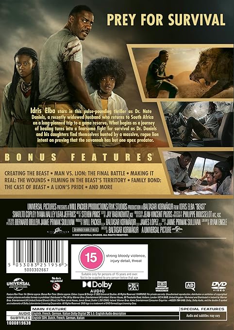 Idris Elba stars in this pulse-pounding thriller as a recently widowed husband who returns to South Africa on a long-planned trip to a game reserve. What begins as a journey of healing turns into a fearsome fight for survival as he and his daughters find themselves hunted by a massive, rogue lion intent on proving that the savannah has but one apex predator.