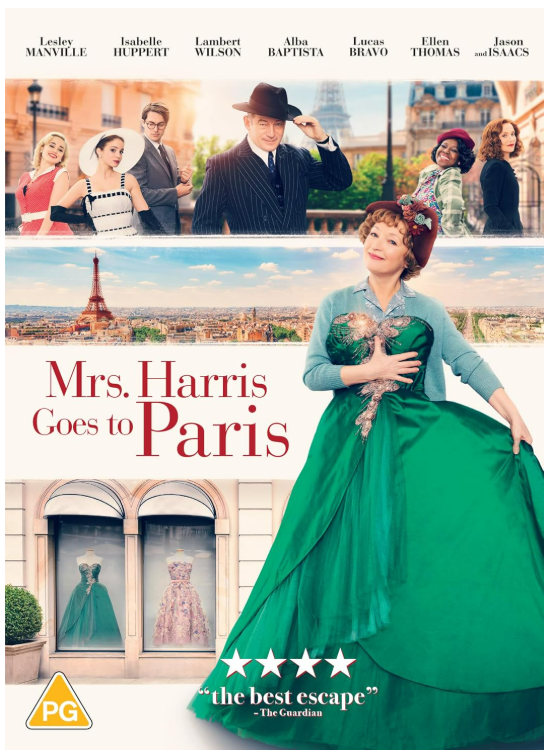 Mrs. Harris Goes to Paris tells a humorously heartwarming tale about London housecleaner Ada Harris (Lesley Manville), who thinks her lonely life might turn around if she can become the owner of a Christian Dior gown.