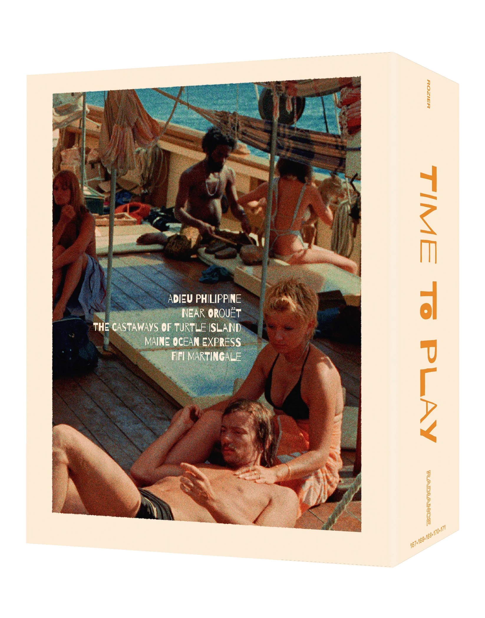 In Adieu Philippine (1962), two girls and a young man spend an idyllic few days in Corsica, his upcoming military service in Algeria looming on the horizon. Also abandoning Paris for the seaside, three girlfriends enjoy a languorous late summer break in Near Orouët (1971). A promised Robinson Crusoe experience in the Caribbean turns into something much more chaotic in The Castaways of Turtle Island (1976). Maine-Ocean Express (1986) follows strangers on a wild adventure across the language barrier. In the backstage comedy Fifi Martingale (2001), a superstitious theatre director makes catastrophic changes to a successful play.